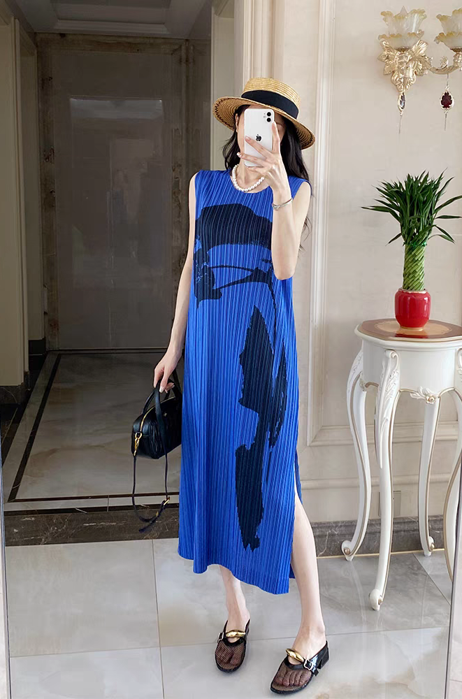Brand new pleats please issey Miyake style round neck pleated short sleeve dress with stylish and sexy geometric print and side slit. Micro-elasticity, stretch, and light weight. The beautiful tasseled dress comes in one comfortable size, stretch to fit from size 6 – 14, maximum weight of 75kg. This Issey Miyake-style dress is characterized by…